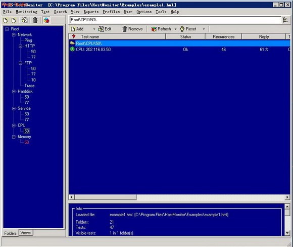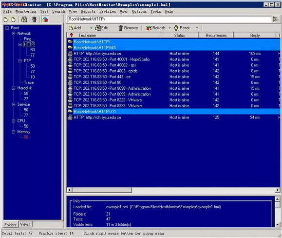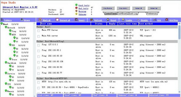 开始使用Hostmonitor这一监视软件来实现对服务器的监视,首先来看看在软件的界面各个部分的划分: