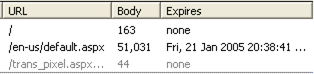 使用HTTP会话列表,Fiddler用户可以看到在页面里包含的HTTP缓存头。