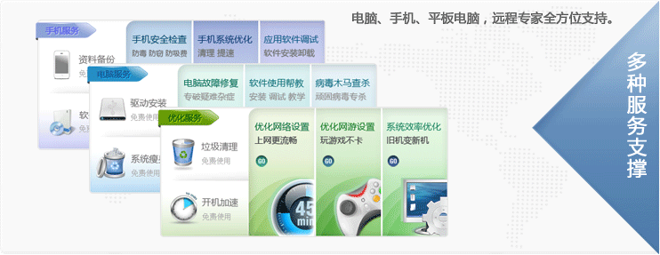 电脑慢、玩游戏卡?手机不知道怎么安装软件?随时呼叫专家远程解决。无需出门在家完成!