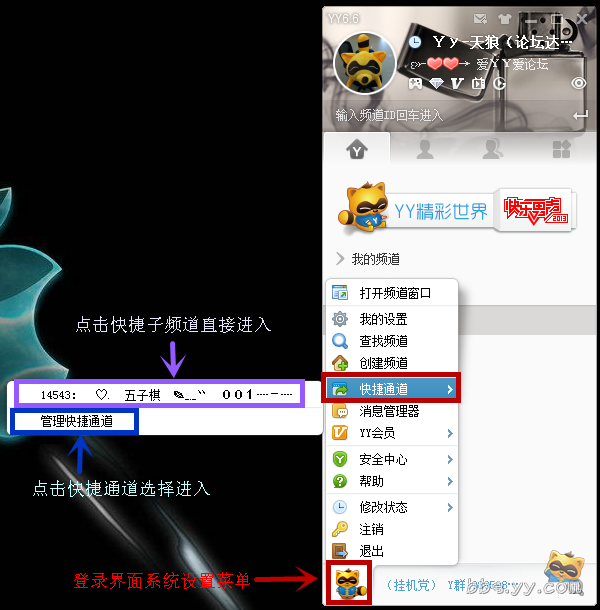 选择快捷通道进入或在YY登录界面点击菜单同样点击快捷通道进入