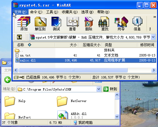 9、用sygate安装文件RAR压缩包“破解”目录下的salic.dll文件替换Sygate安装目录中的salic.dll文件。