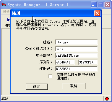 10、打开sygate,在主界面的菜单栏选择“帮助”→“注册”,序列号为(Serial:44D46441-3127CFBA,Code:BCF3D581)。