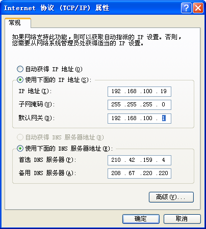 双击“本地连接”→“属性”,双击下拉列表中的“Internet 协议 (TCP/IP)”,配置客户机的IP地址。网关填主机上sygate设置的NAT网关IP,本例中为192.168.100.1,IP地址设置同一网段192.168.100.2至192.168.100.254中任何一个即可,子网掩码为255.255.255.0