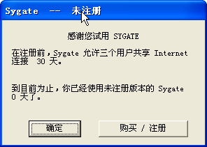 7、暂时不注册,点击确定按钮完成sygate的安装。