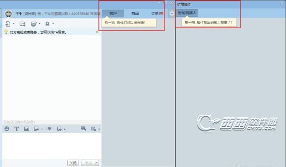 旺旺多插件展示,可以把旺旺插件拖出聊天窗口,拖进拖出,自由组合,能同时展示多个旺旺插件哦;