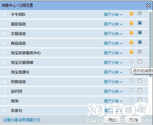 千牛新增消息中心自定义提醒,能自己设置消息的提醒方式,还可以把重要消息加星标哦!