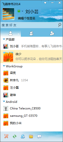 飞鸽传书2014,是老版飞鸽传书的全新升级版本,在原飞鸽传书版本上,增加文件传输管理和远程桌面功能,完善讨论组和群发功能,并大幅度改善用户体验,提升软件性能、稳定性。