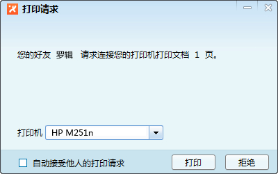 对方在收到您打印请求后,可以选择同意或拒绝打印,如果对方设置为自动接收打印请求,则无需经过同意,自动打印。