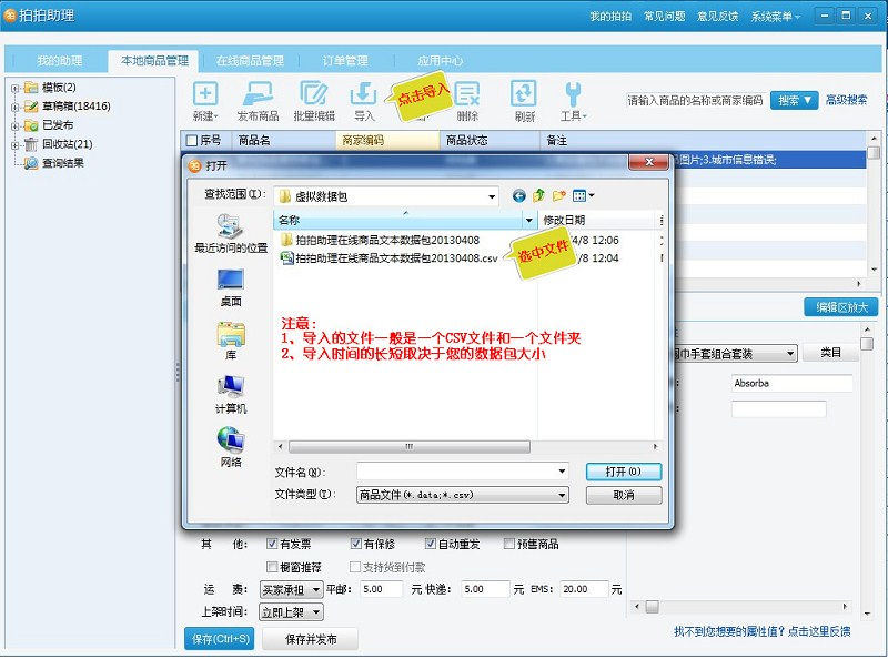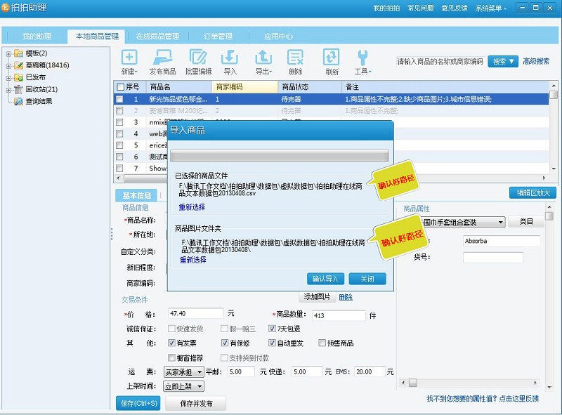 为什么我导入其他网站的CSV文件到拍拍助理—商品管理后,商品的图片、商品详情和商品分类看不到了?