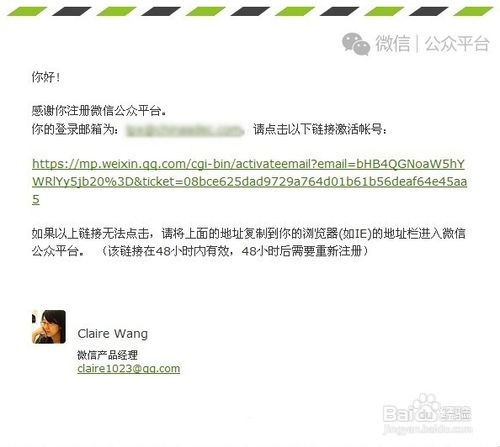 注册需要用到邮箱! 填写好邮箱之后进入邮箱。打开微信给你发的邮件, 然后点击里面的激活账号的链接,完成激活即可。