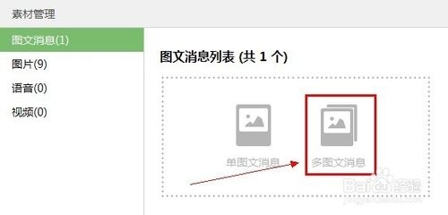 不过这里编辑的图文都只是一些图文展示, 如果想要发布可以带链接的图文,这个就需要在素材管理里面来添加了!! 进入素材管理, 点击添加多图文消息。