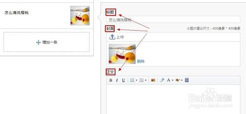 大图下面的标题会比较关键, 标题和缩略图要选择好。 然后内容的话可以加一些文章的前一段都可以。关键是编辑内容下面可以加入文章的链接。 这样微信用户点击标题就可以进入你指定的网站了。