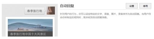 进入自动回复之后还需要在自动回复里面点击设置。下面还有自定义菜单功能,不过自定义菜单需要服务号才可以!