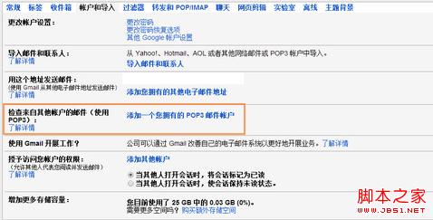 点击打开“设置”界面之后,点击顶部选择“账户和导入”。在账户和导入中,用户可以看到一个“检查来自其他账户的邮件”,在该选项中点击“添加一个您拥有的pop3邮件账户”。