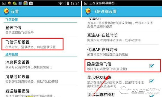 2)在“设置”中,我们可以看到“飞信详细设置”,点击进入,就可以看到“隐身登陆飞信”,在“隐身登陆飞信”上打勾,就可以隐身了。