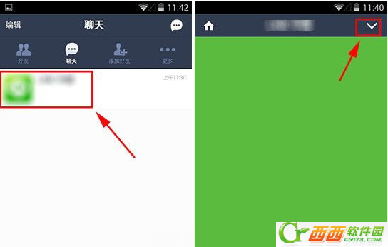 1)首先在好友的聊天页面上点击进去,在右上角的“v”中点击进去。
