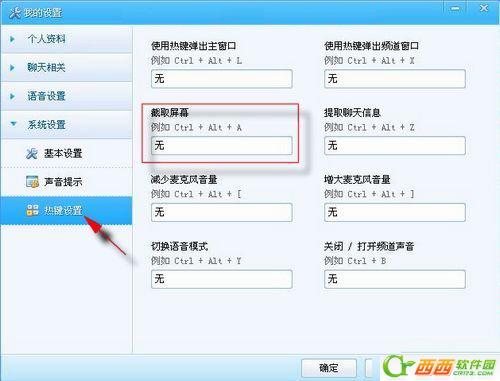 “截取屏幕”就是YY截图快捷键了,用鼠标点击下“无”字输入框,然后按电脑的快捷键进行设置即可。