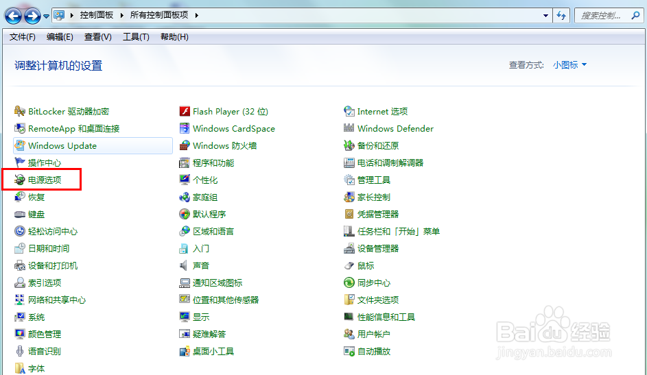 2、找到“电源选项”