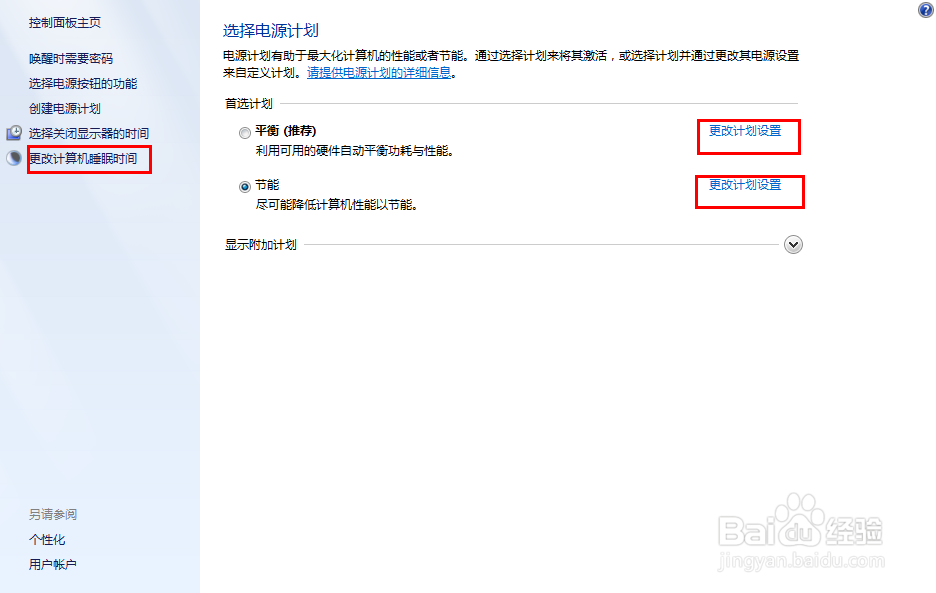3、选择“更改计划设置”