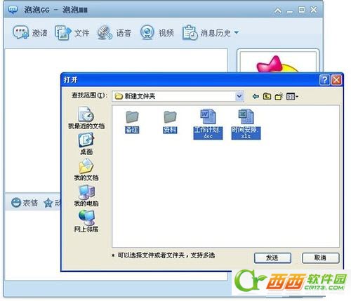 一:登陆popo,然后随便点击一个对话窗口(当然这里你最好打开你想要传送文件的那个好友对话窗口),然后找到“文件”选项并点击它,当你选择好文件后就可以点“发送”这个功能即可。