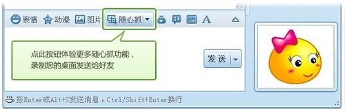 一:登陆网易popo然后打开任意一个对话窗口,并在对话窗口界面中间可以找到一个“随心抓”选项,点击它就可以截图。