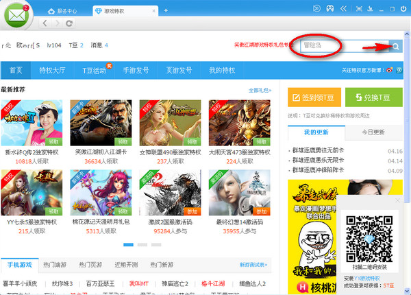 然后在游戏特权首页搜索“冒险岛”
