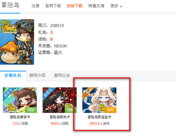 冒险岛聚宝盆卡礼包内容: