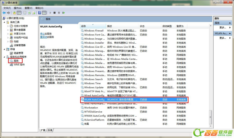 WIN7/win8查看无线网卡的服务:计算机右击—管理—服务