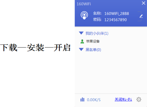 160WiFi是一款简单易用的WiFi网络共享工具,它可以轻松简易的将有线网络变成无线可用的WiFi网络,供手机,平板以及其他的电子设备上网。相对传统的路由器,160WiFi类似路由器,但更兼具易用性与实用性。实际上,虽然Windows系统源生支持无线网络共享,但是操作步骤繁琐不易设置普通用户根本是无从下手。160WiFi将这一功能简化并发扬光大,用户仅需简单操作3步即可打开160WiFi页面实现网络共享符合技术宅也更适合小白用户。