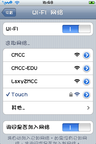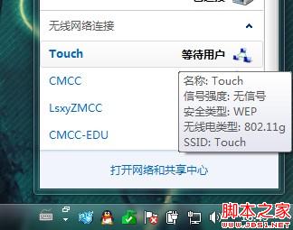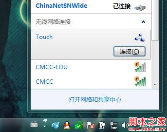 下面再点击网络图标,看到里面的名为Touch的无线连接了吧?(刚刚你填的什么这里就是什么)点击连接吧!