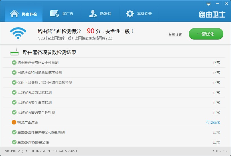 路由器是家庭网络信息进出的大门,所有设备上网的必经之路,路由器一旦被劫持, 会导致QQ被盗号、网购被劫持密码、个人信息被偷窥等重大安全事故,比电脑中毒更可怕,直接影响所有上网的设备。最近有一款专为路由用户设计的软件——路由卫士,这是一款及简单的路由器设置管理软件,其主要功能是一键设置优化路由、屏广告、防蹭网、路由器全面检测及高级设置等功能。一起和小编到官网下载安装体验下吧。