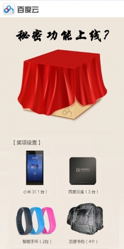 3、 7月15日百度云会从竞猜成功的参与者中随机抽取赠送小米3、百度云盒、智能手环等奖品喔!
