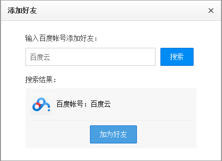 第二步:选择“添加好友”,将“百度云”加为好友,