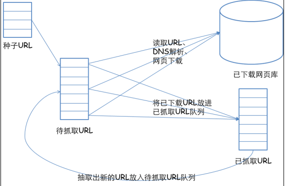 4.分析已抓取URL队列中的URL,分析其中的其他URL,并且将URL放入待抓取URL队列,从而进入下一个循环。