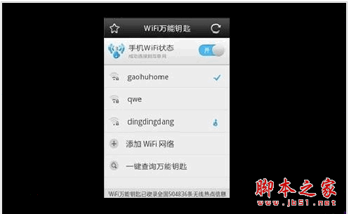 6.点击“一键查询万能钥匙”,用户分享过密码的热点会显示有蓝色钥匙标志,然后点击“自动连接”,如果未连接成功,可以尝试连接其他热点。