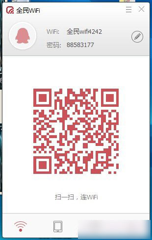 腾讯全民wifi其实也可以叫做腾讯随身wifi、qqwifi,不仅可以将电脑一秒变成wifi热点,而且还拥有游戏加速、游戏礼包等诱人功能,如果你想连接wifi,直接扫扫二维码就能连接,对于广大用户来说,是绝对的福利啊!