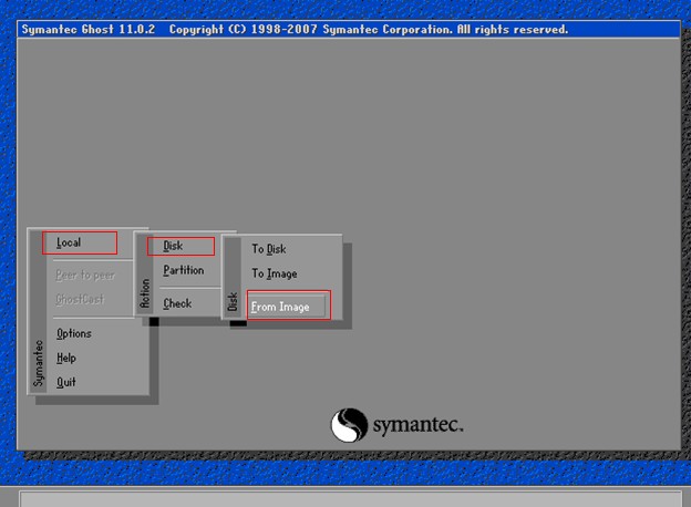 2、在出现的ghost界面中,选择Local->Dist->From Image。