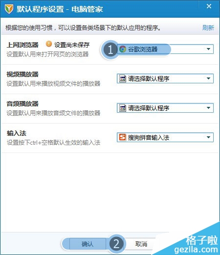 2 打开电脑管家→点击【工具箱】,点击【默认程序设置】→在上网浏览器列表中选择【谷歌浏览器】:
