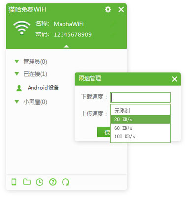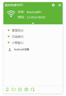 猫哈免费WiFi是一款免费的WIFI分享软件,能够将电脑瞬间变成WIFI热点,用户可以使用猫哈实现免费WIFI上网,用户无需购买无线路由器,能支持所有随身wifi驱动,可实现手机/ipad上网不耗费任何流量。无需任何技术专业知识,安全、稳定,在家里/酒店/公司/学校都能实现自由上网。具备无线网卡的主流电脑都可以免费使用WiFi。