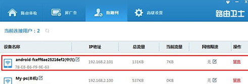 为什么在家里装的电信10M宽带还顶不上朋友家的2M网速,网速经常突然变慢,视频总是缓冲,网页进不去,游戏也总是卡顿,大家有想过自己的网被蹭了吗,即使是把密码改成超级复杂,没过多久仍是如此。小编今天为大家介绍的一款软件为路由卫士,安装设置以后,网速超快,再也不用担心有人蹭网了。