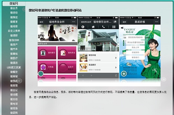 微官网是指将企业信息、服务、活动等内容通过微信网页的方式进行表现,不但提高了信息量,也使信息的展现更加赏心悦目,进一步提高用户体验。