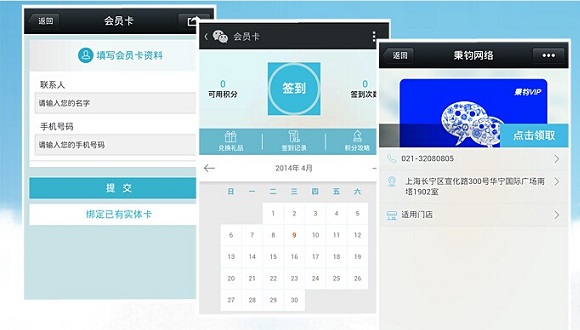 微信会员卡通过在微信内植入会员卡,基于全国4亿微信用户,帮助企业建立集品牌推广、会员管理、营销活动、统计报表于一体的微信会员管理平台。清晰记录企业用户的消费行为并进行数据分析;还可根据用户特征进行精细分类,从而实现各种模式的精准营销。