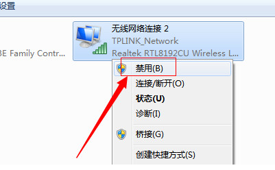 4.把电脑中的无线网卡禁用一下,再重新启用一下试试,具体操作流程可按下方的步骤操作: