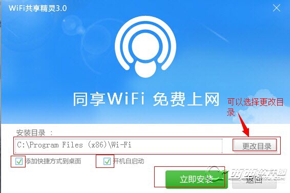 自定义安装:可以选择是否添加快捷方式到桌面还有开机自启动,选择好更改目录后,立即安装: