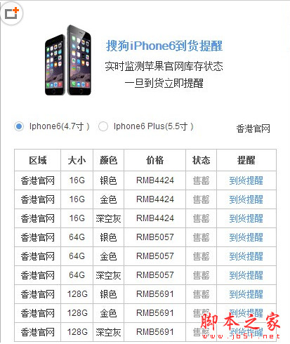 搜狗抢iPhone6神器可以监控iPhone6和iPhone6 Plus(6+)的各大版本的库存情况。
