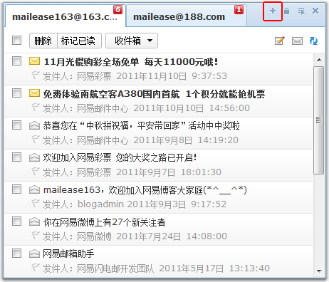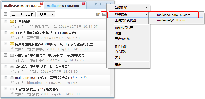 您也可以单击网易邮箱助手托盘图标,在主界面添加新帐号。最多添加3个帐号。