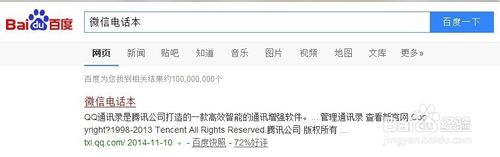 1、百度一下【微信电话本】然后再点击第一个链接进入到它的官方网站。