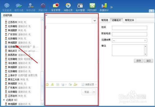 5、中间的是对话窗口,于访客进行对话。
