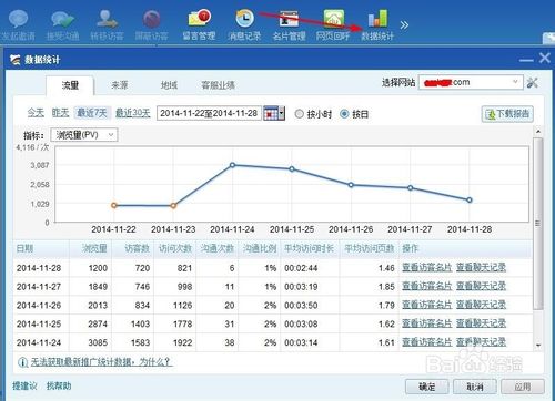 7、点击数据统计,可以查看固定时间内的访客于客服的对话。