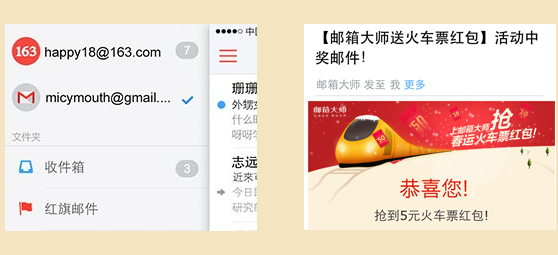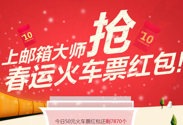 下载邮箱大师抢春运火车票红包!还有机会抢到免费火车票!邮箱大师APP所送的福利大家HOLD住了吗?在你购买火车票期间,红包可以直接减现哦!有兴趣的伙伴们赶紧来参与吧!